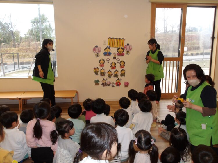 『うれしいひなまつり』の歌に合わせてパネルシアターを楽しみました。