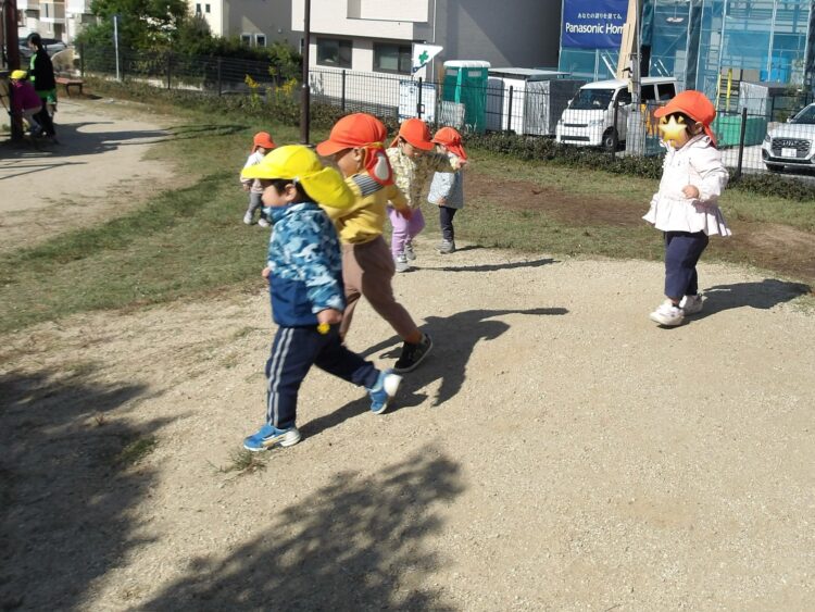 行き帰りもしっかり歩けるようになり、坂道でも転ばずに積極的に走り回っている子どもたちです。体幹がしっかりして、きちんとバランスをとっていますよ。