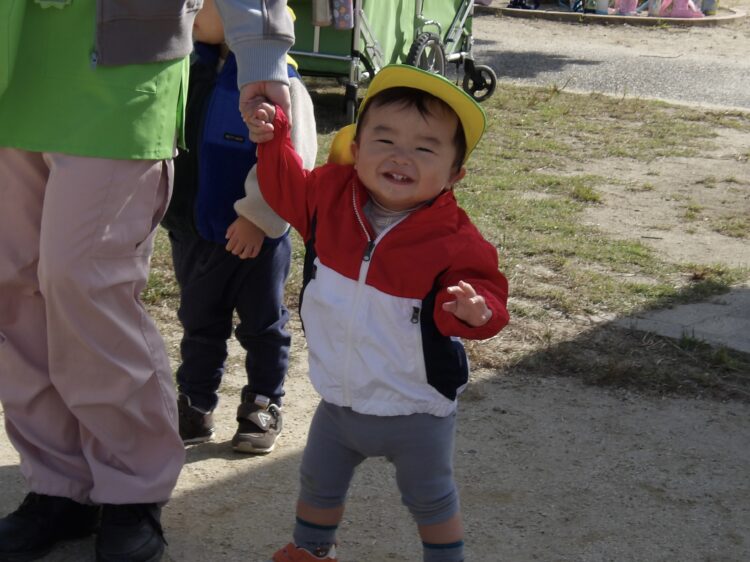 ひよこ組のお友だちもたくさん歩けるのが嬉しいようです。あちこち散策してはニコニコの笑顔を見せてくれていますよ。