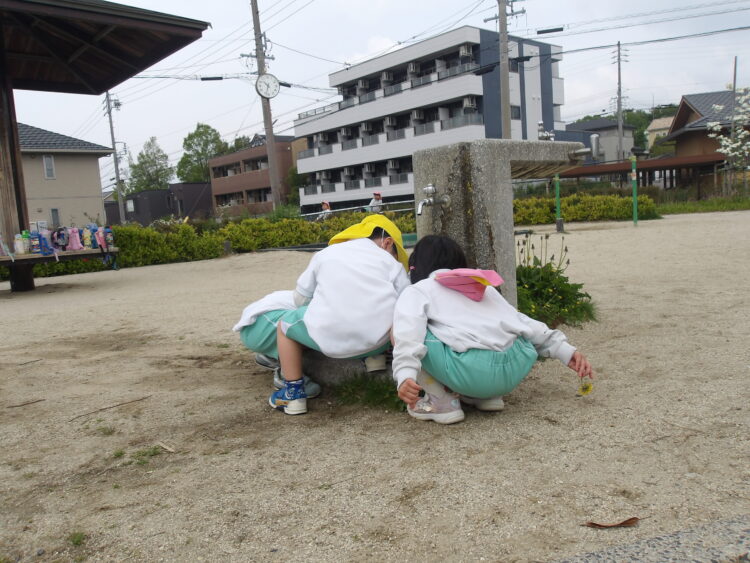 公園に行くとまずはアリの観察をすることが日課になった子どもたち。