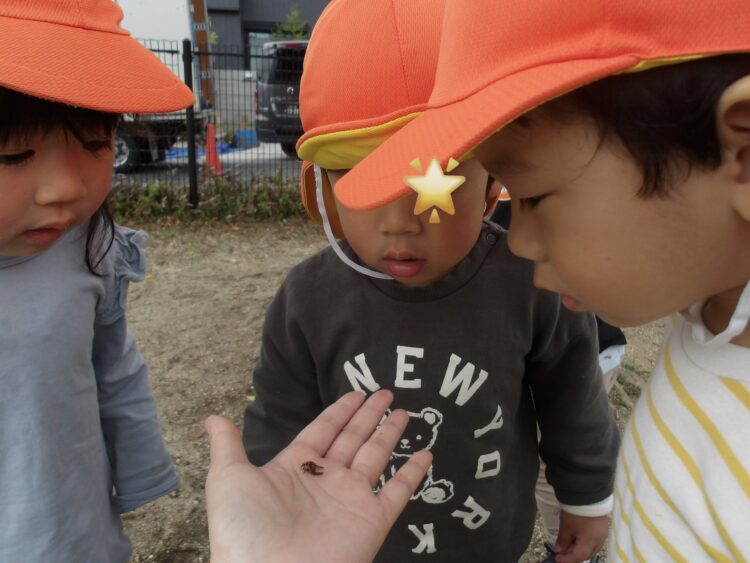 「虫がいる!」と水に浮いている虫を観察していました🤭