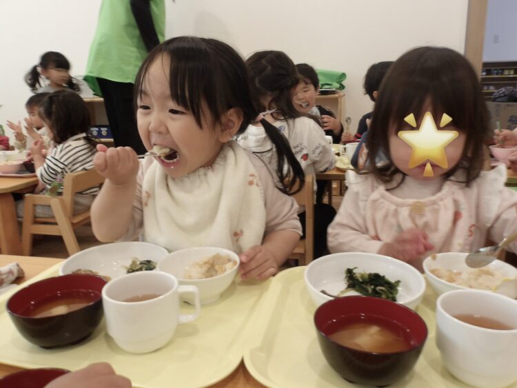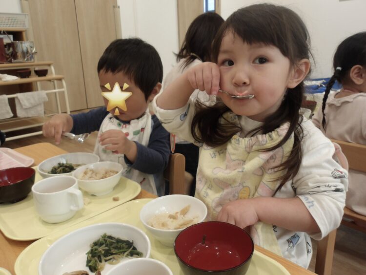 保育者の言葉を繰り返し、つぶやく姿が見られました。