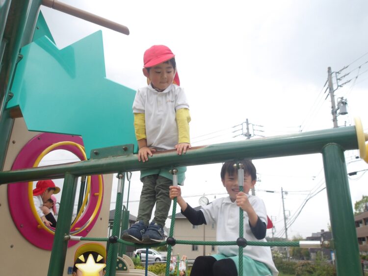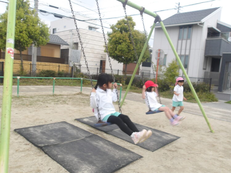 ブランコでは、漕ぎ方を教えあったりして楽しんでいましたよ!