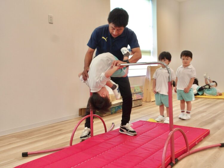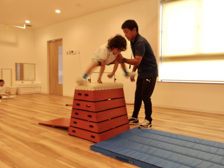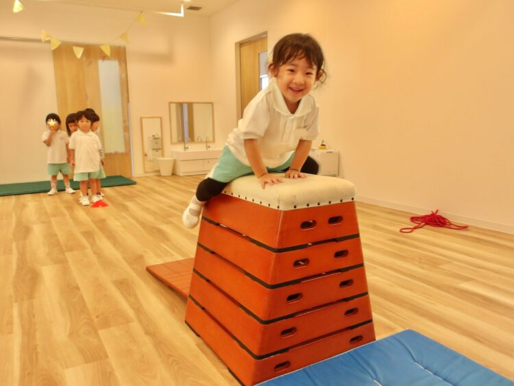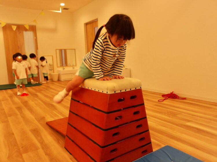 ほとんどの子が自分で跳び箱に乗ることができていましたよ。