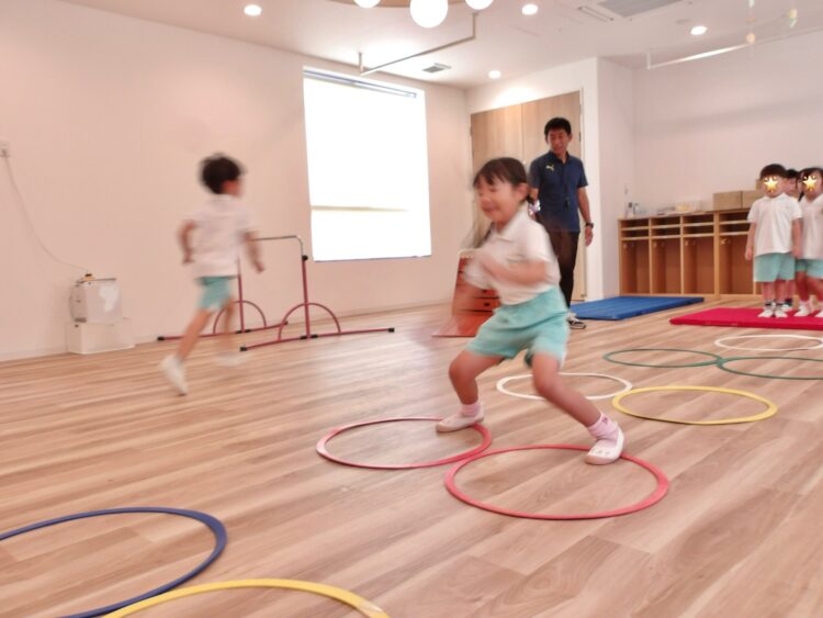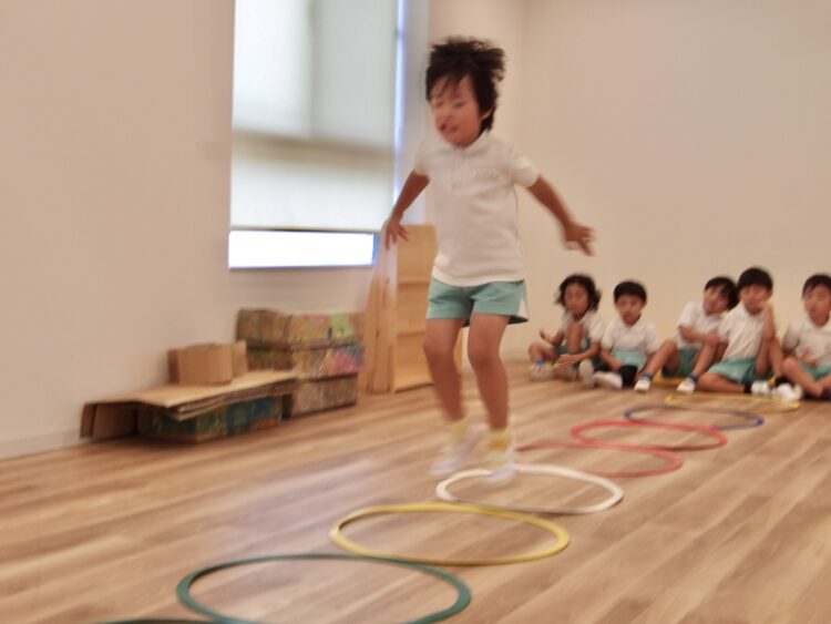 にじ組はフラフープジャンプをしました。