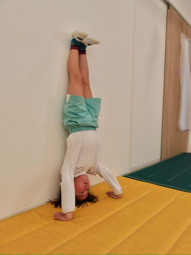 壁を使って逆立ちをしたりしました。