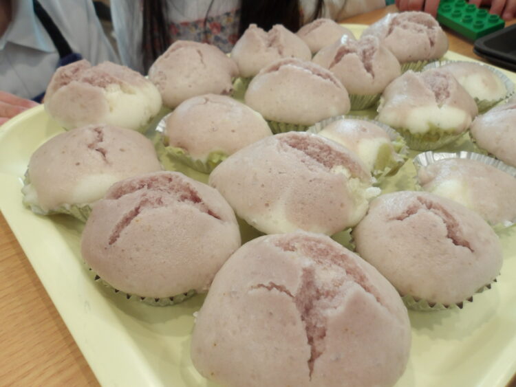 膨らんだ蒸しパンを見て、「肉まんになったー!!」と言う子が沢山いましたよ😂