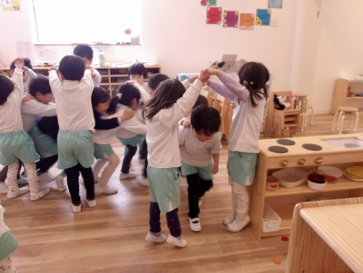 イングリッシュタイムでは《London Bridge Is Falling Down》でみんなであそびました。