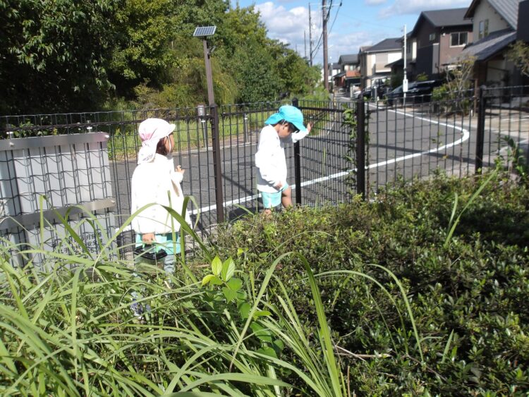 虫探しが大好きな子たちは草の中に入って行き、バッタやトンボを探していました。