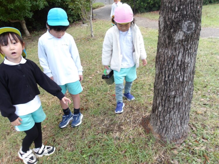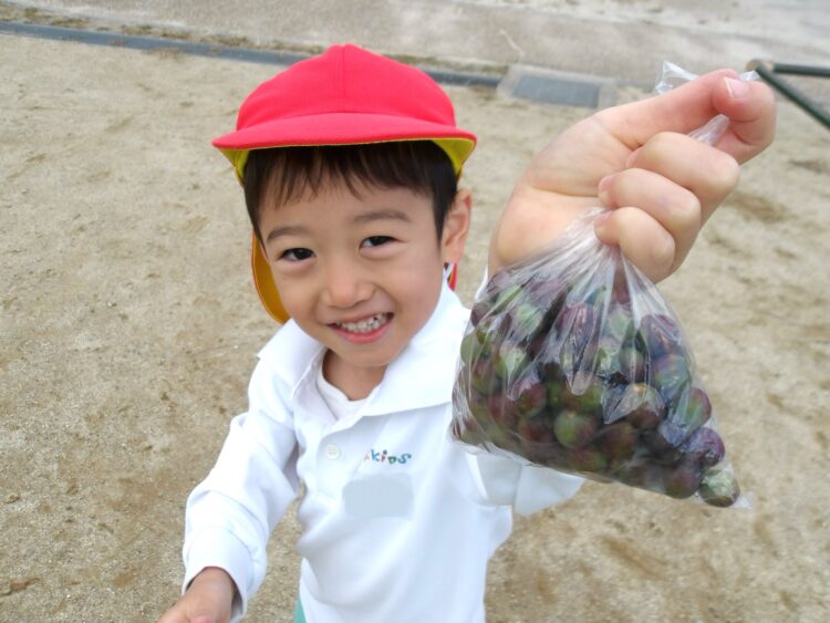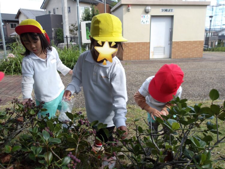「先生見て〜!こ〜んなに見つけたよ!」とどの子も袋いっぱいに集めた木の実を見せに来てくれました♩