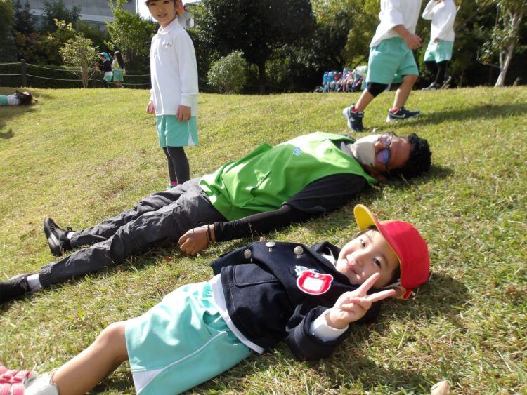 築山では寝っ転がってのんびりしたり、
