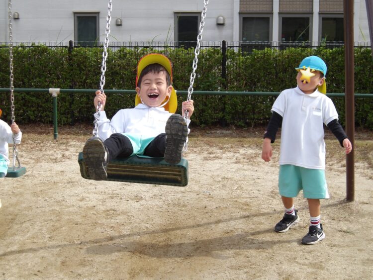 たいよう組は、そら組の子がブランコにくると、優しく背中を押してくれる微笑ましい姿が見られました。
