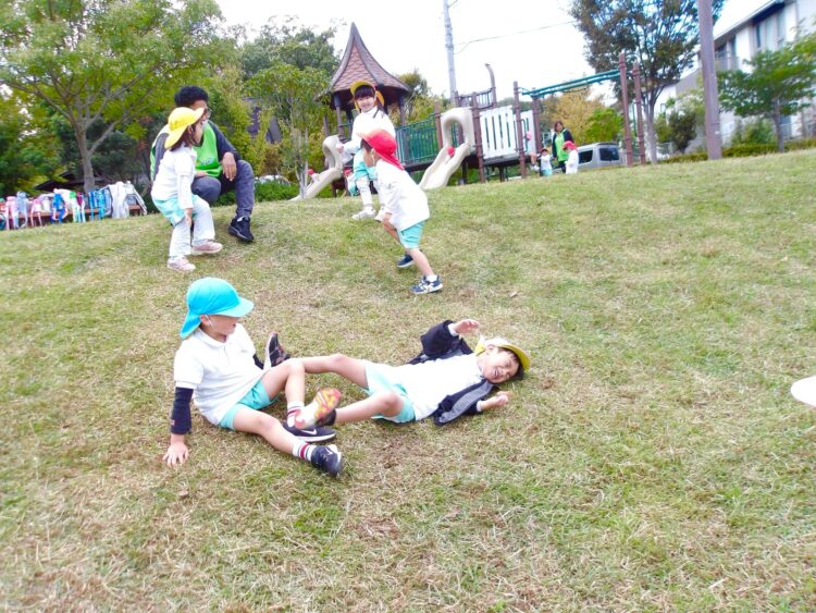 友だちと手を繋いで一緒に転がったり、何度もなんども楽しんでいました!