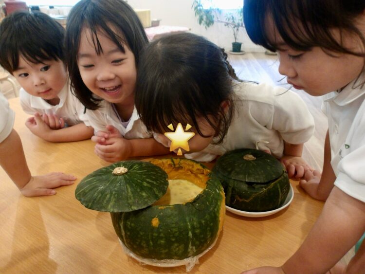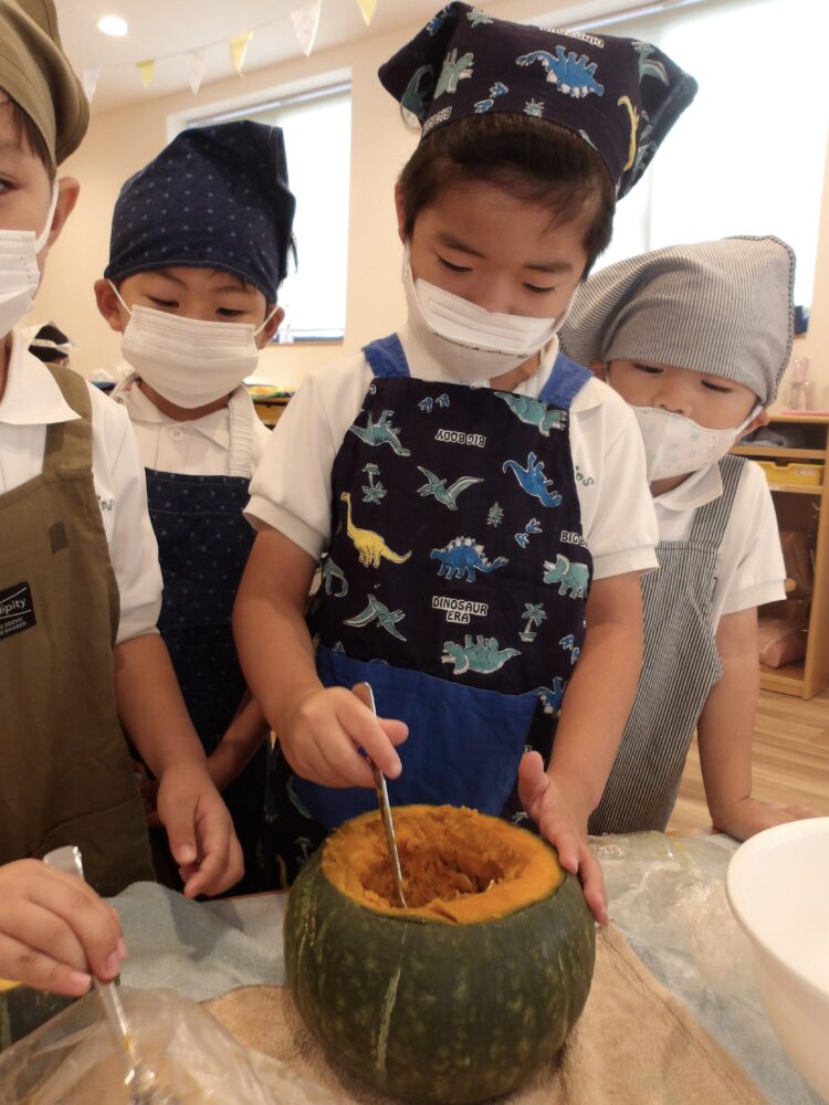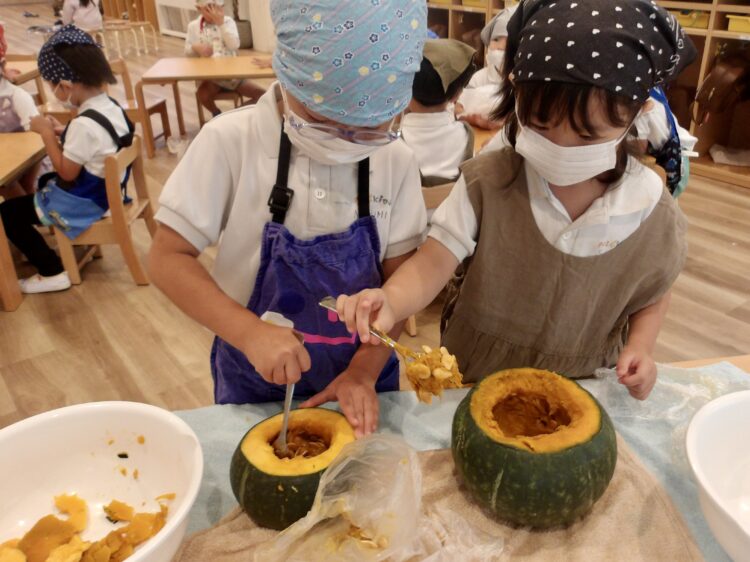 クッキングを通してかぼちゃの重さや色、匂い、種などたくさんの発見をすることができました!☺️