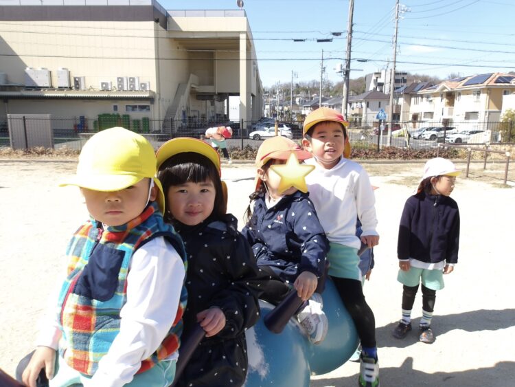 仲良くスプリング遊具に乗って遊ぶ子も🤭