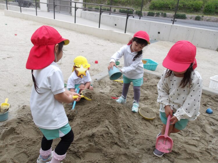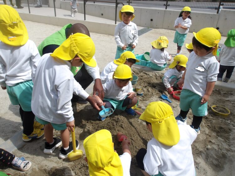 先生やお友だちと一緒に山を作ったり、お店屋さんを開いて楽しそうに遊ぶ子どもたちでした!