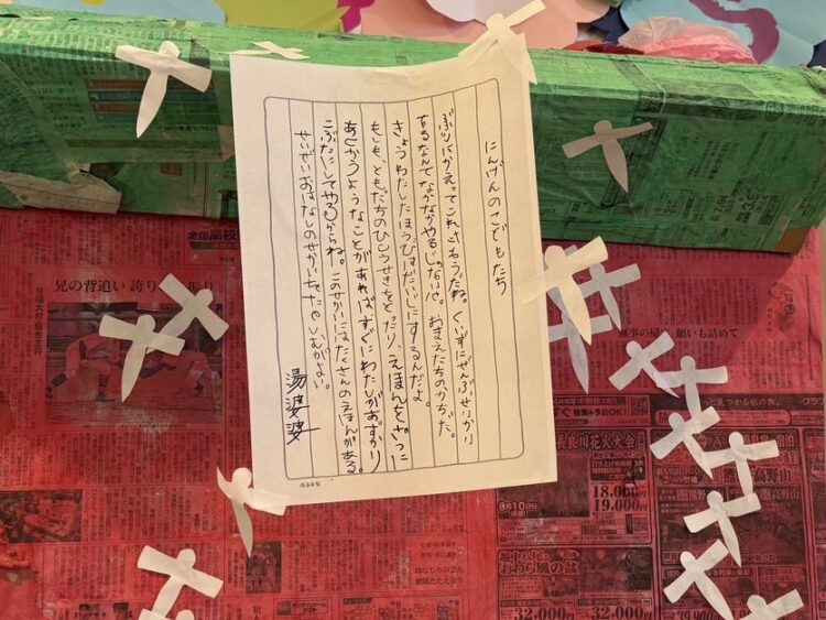 心を踊らせて登園すると、ハッピースプリングの時に作った油屋に湯婆婆からの手紙が貼り付けてありました。