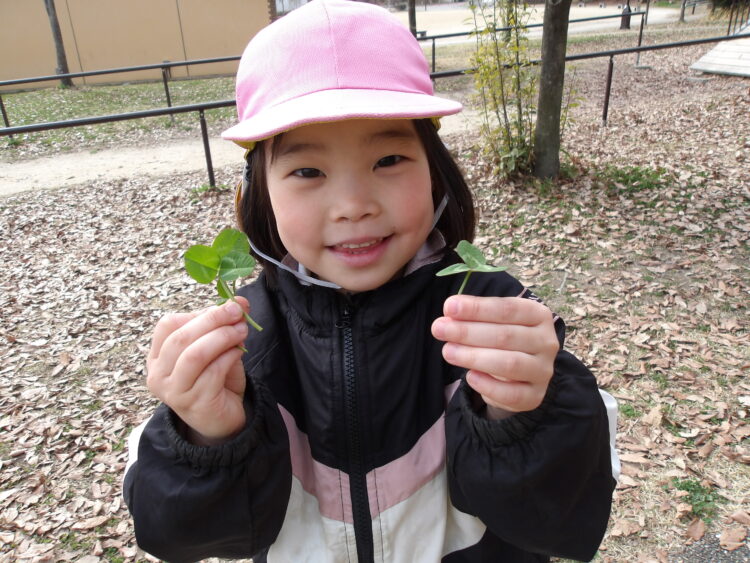 公園では、じっと地面を見たり、落ち葉をかき分けたりしてクローバーを探す姿が見られましたよ。