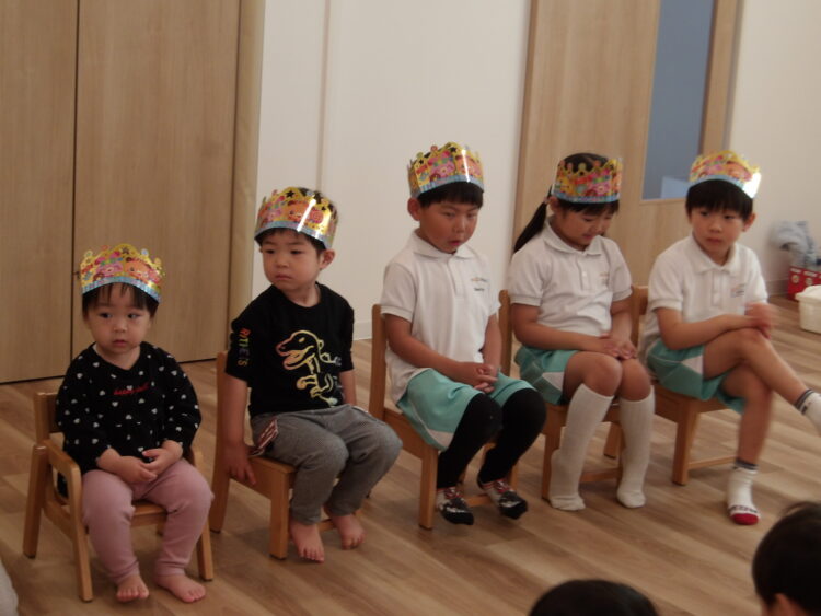 そら組はピアノの音をよく聞いてリズムを取ろうとする姿が見られ、にじ・たいよう組は一人ひとりがリズムに乗れるようになり、手拍子やカスタネットの演奏では音がずれなくなってきましたよ✨