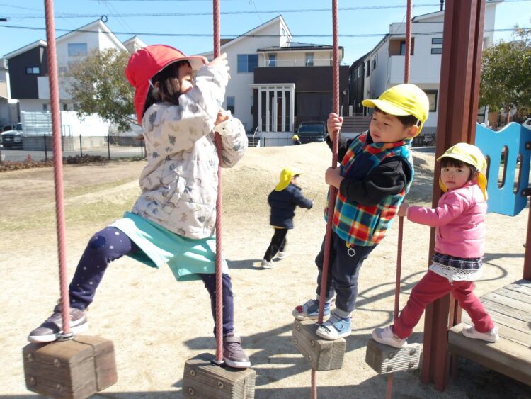 少し難しい遊具も、お友だちに遊び方を教えてもらったり保育者に補助をしてもらいながら挑戦していました!