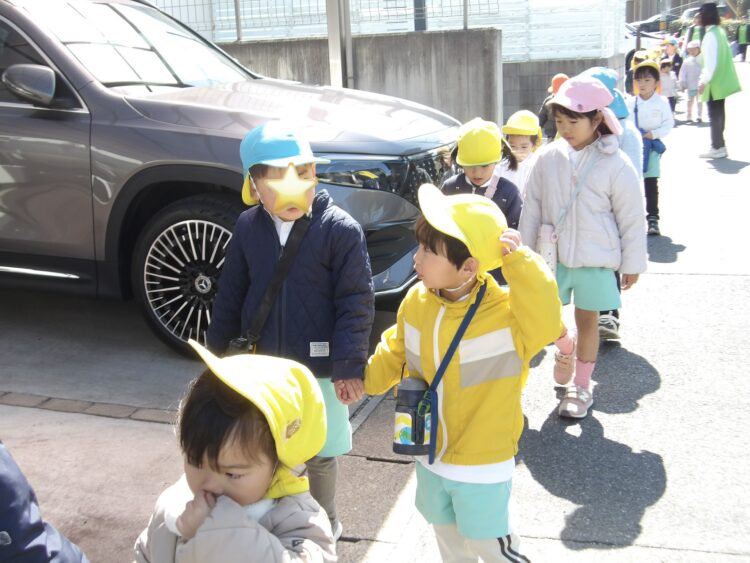 今日はたいよう組さんとの思い出作りに、全員でお散歩に出かけました!行きも帰りも年下のお友だちに優しく声をかけて手を繋いでくれましたよ。
