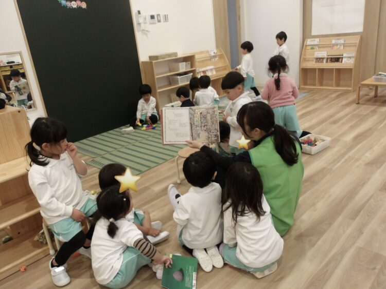 朝の会で保育者の紹介をしたり、歌を歌ったりしましたよ。