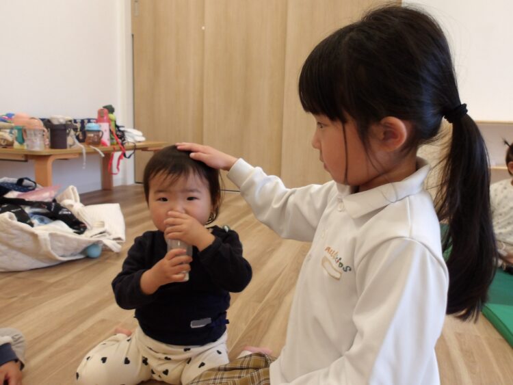 大好きなおうちの方から離れて過ごすのは泣けてしまいましたが、保育者が抱っこしていると落ち着いたり、見つけたおもちゃに触れてみたりしてゆったりと過ごしましたよ。