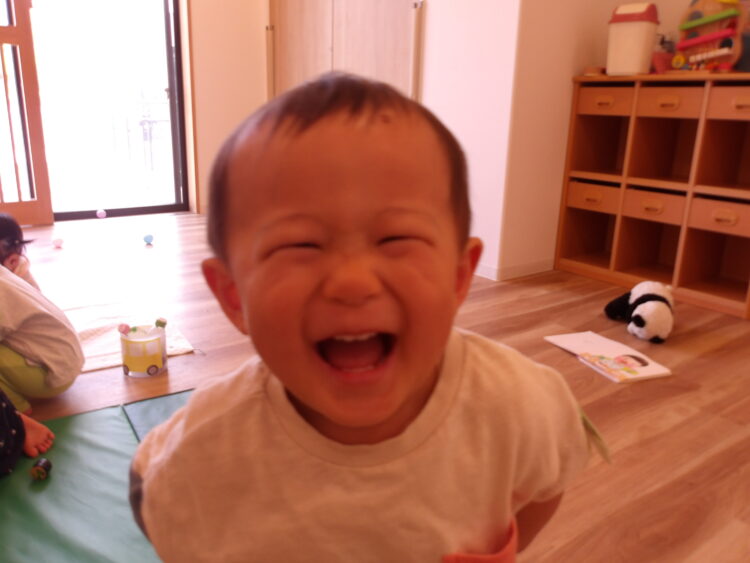 お散歩が余程楽しかったのか、お部屋に入る時に少し泣けてしまう子もいましたが、お部屋に戻ってからも素敵な笑顔を見せてくれたり、気になるおもちゃを手に取りあそぶ姿が見られました。