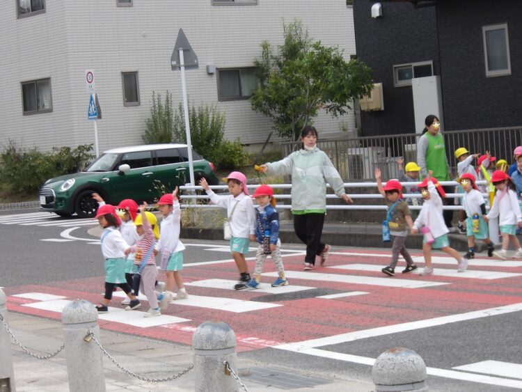 違うクラスのお友だちとペアになって歩いたのですが、年下の子の歩くペースに合わせてくれるお兄さん、お姉さんの優しい姿が見られましたよ。