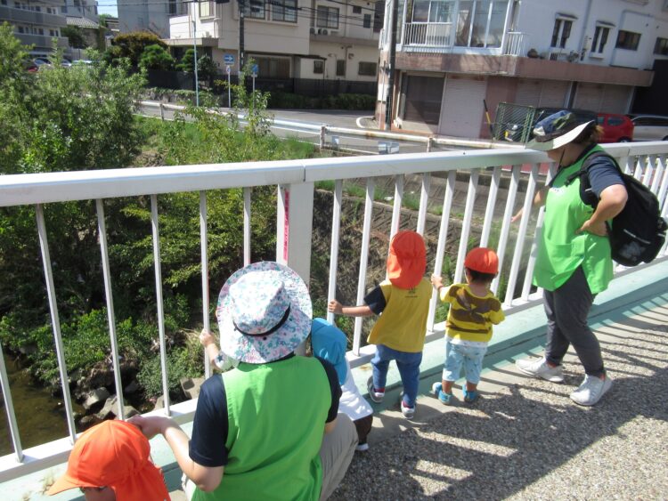 「え~どこ~?」「いたー!」じっくり見守るこどもたちでした