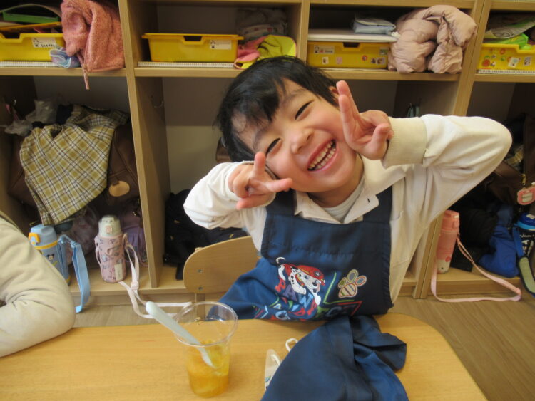 どんどんエプロンを付けるのも上手になってきたみんな、毎月のクッキングを楽しみにしてくれていました😆