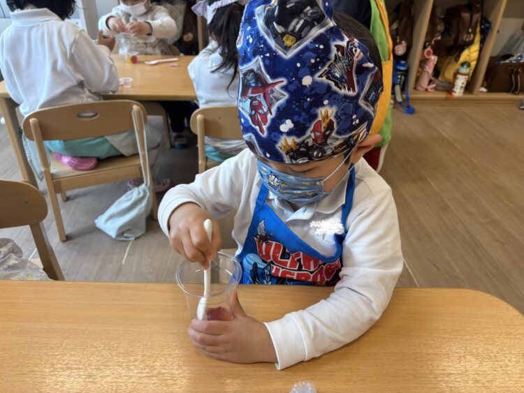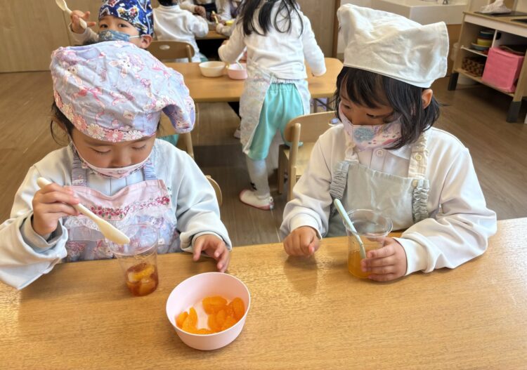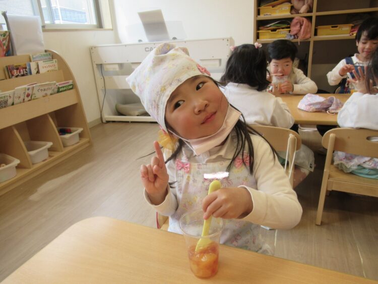 ぱんだ組での最後のクッキングはフルーツポンチです!🍎🍊