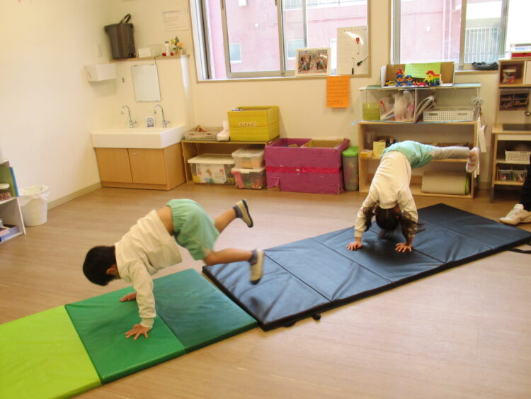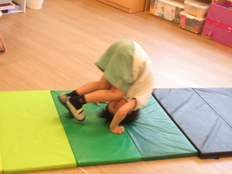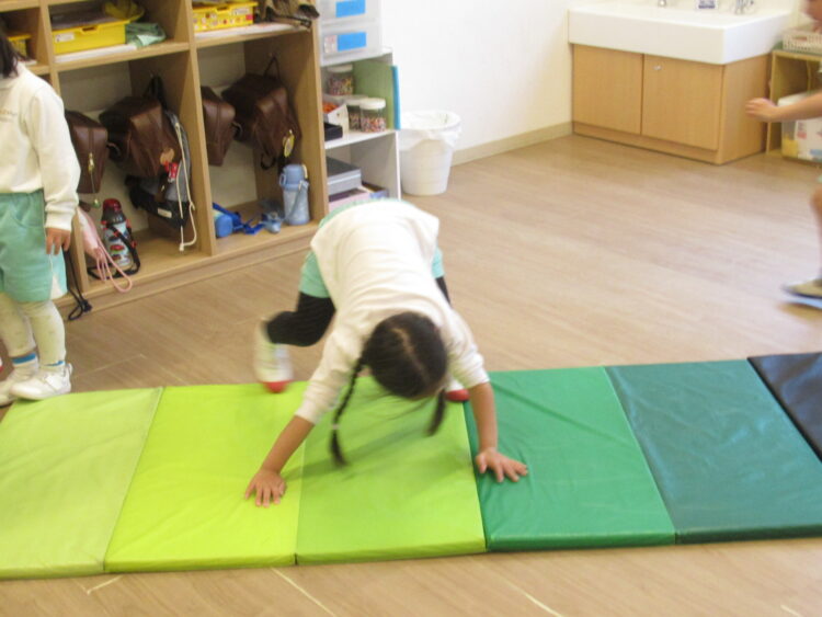前転したりマットの上を寝転がったりとたくさん動いたぞう組さんでした🐘