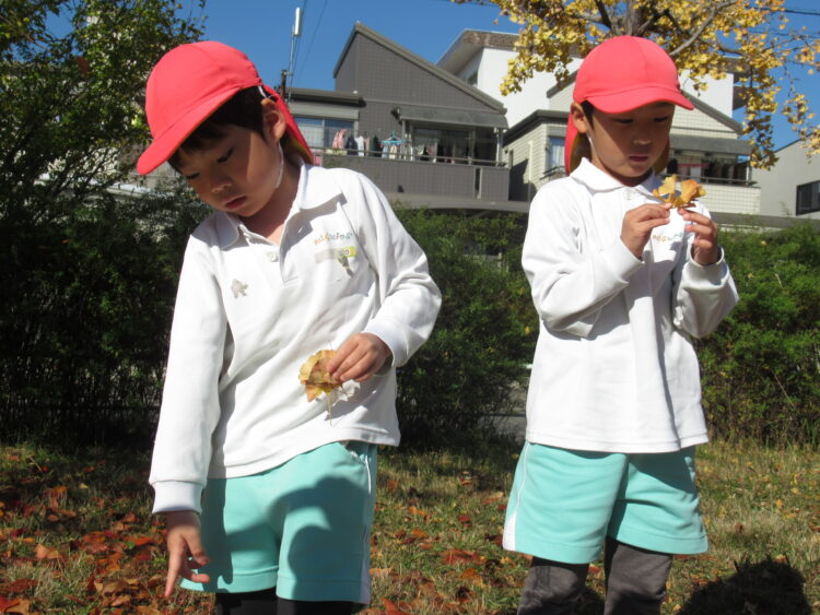 塩釜口(4~5歳)ホーム > 園のブログ > 第三公園🐘🦁第三公園🐘🦁2025.11.20ゾウ組さんライオン組さんで出かけました🛝 銀杏の木を見つけて葉っぱを集めたり 「くさーーい!」と銀杏を持って走り回ったりしていました😂前の記事