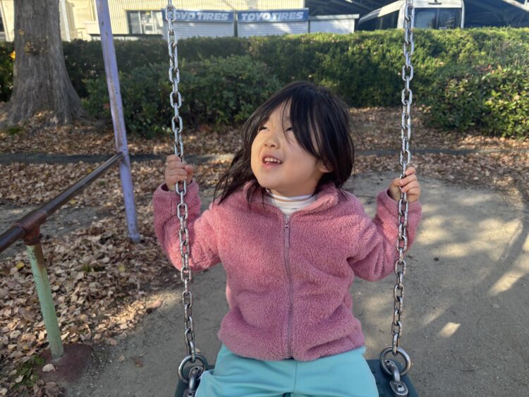 青空には飛行機雲がキレイに見えてブランコに乗りながら楽しみました☺️☁️