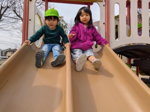 久しぶりの滑り台に