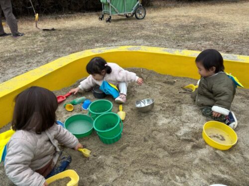 植田山公園に到着です🛬久しぶりのお砂場遊びに大興奮のひよこ&あひる組さんです🐥🦆