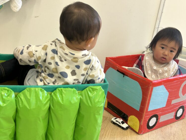 昨日の午後は、お部屋に新しいおもちゃが登場して興味津々の子供たち🥰触ったり乗ったりしながら楽しむ姿が見られました💕