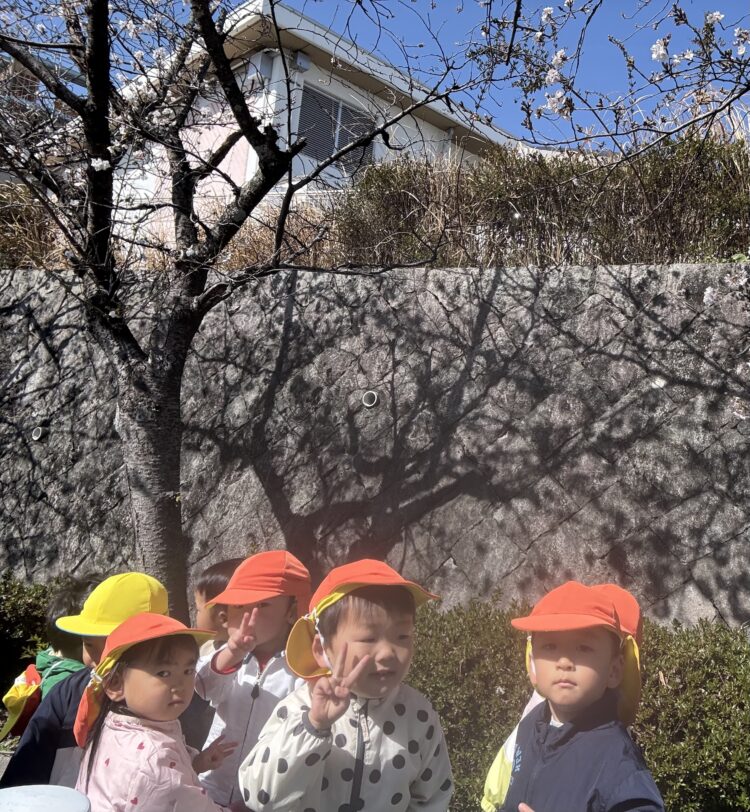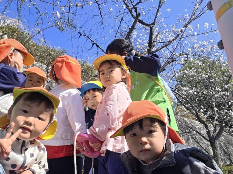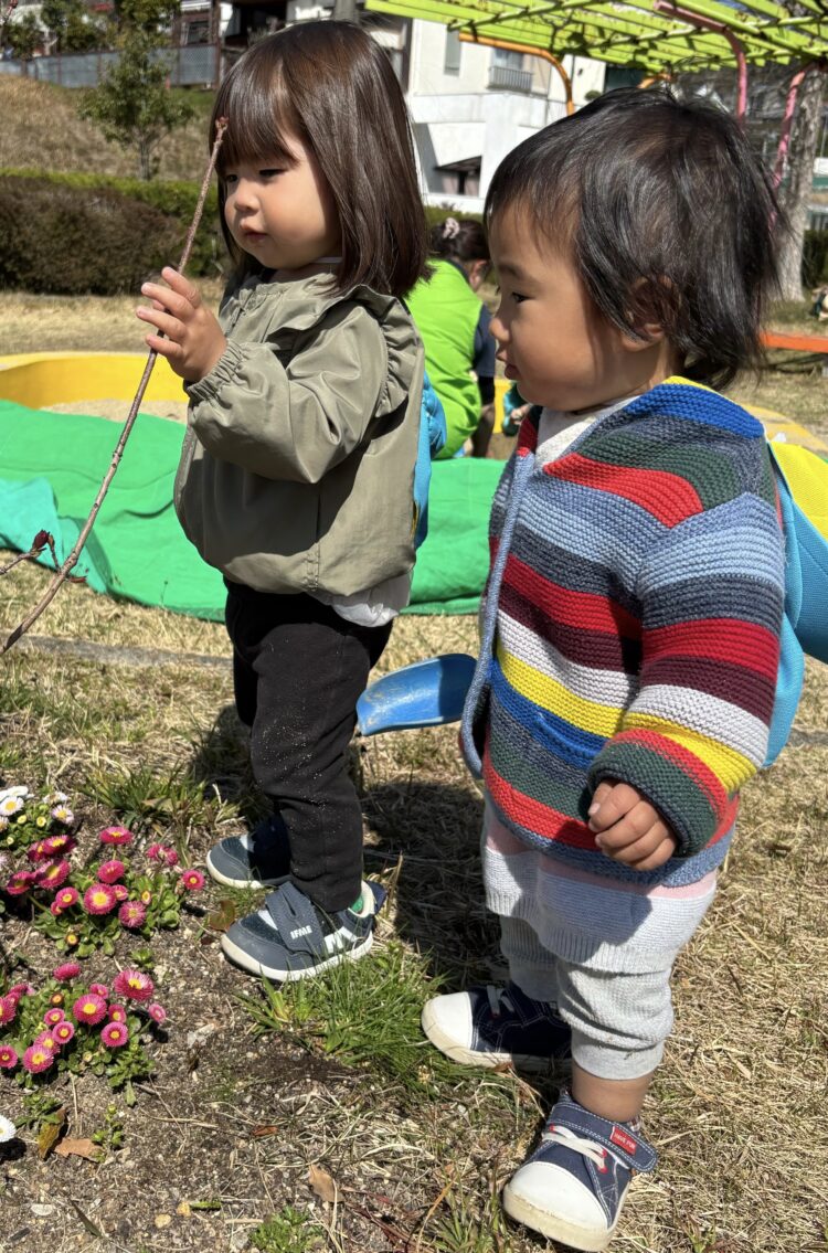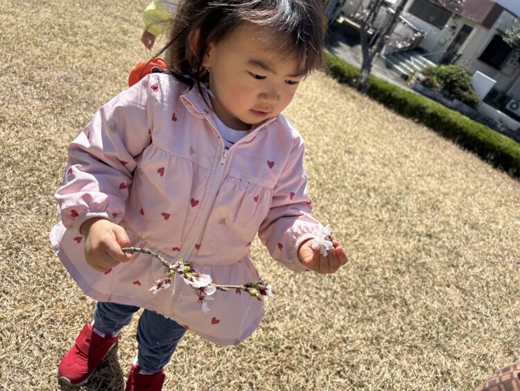 植田山公園では桜のついた枝を発見してラッキーなお友達も✌️