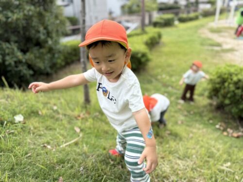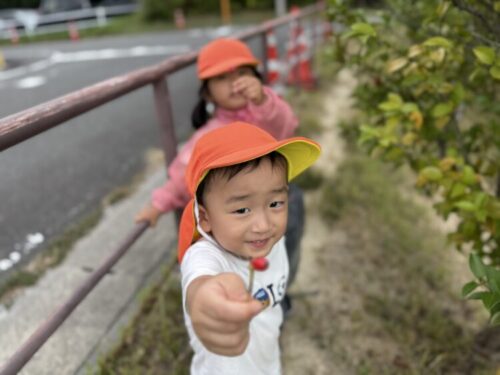 探検中に赤い木の実を発見🔍「赤赤‼️」と嬉しそうに見せてくれました☺️ハナミズキの実だそうで、保育園に帰るまで大事に持っていました🥰
