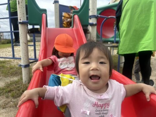 今日も楽しくすべり台🛝ひよこさんも両手でしっかり持って滑れるようになりました👏