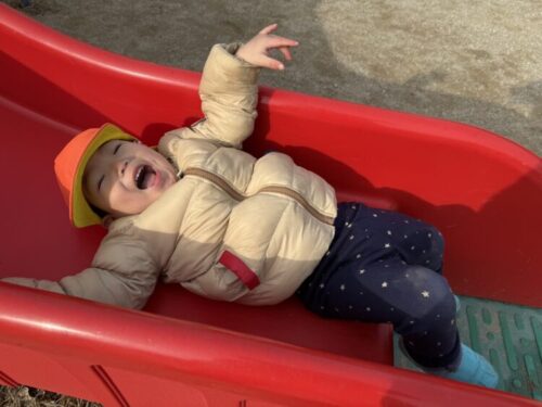 まずは大好きなすべり台です🛝ニコニコ笑顔ですべるあひる組さん🦆すべる度に手を叩いて喜びを表現していました✨