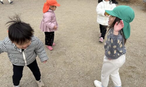 公園で遊んでいると、たくさんの雪が降って来ました❄️「雪だー‼️」と大はしゃぎのひよこ&あひる&うさぎ組🐥🦆🐰思わず踊ってしまうほど嬉しかったようです😊