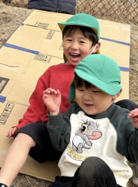 うさぎ組さんも混ざってダンボールすべり台📦「一緒にすべる‼️」とお友だちを誘って仲良く2人で繰り返しすべっていました✨