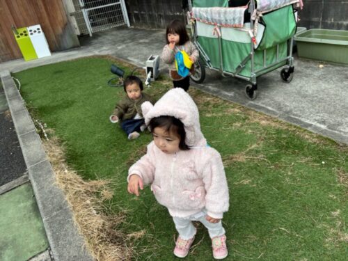 保育園前で遊んでいたひよこ組さんに「行ってきまーす‼️」と元気にご挨拶😊ひよこ組さんもお兄さんお姉さんに負けないくらい元気に手を振っていました👋
