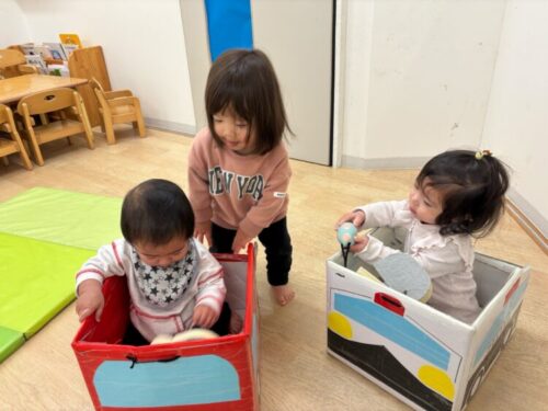 ひよこ組さんは室内遊び👀パトカーや消防車に乗ってお部屋中を走り回りました🚗💨