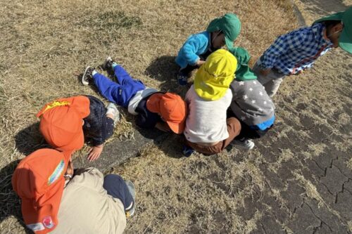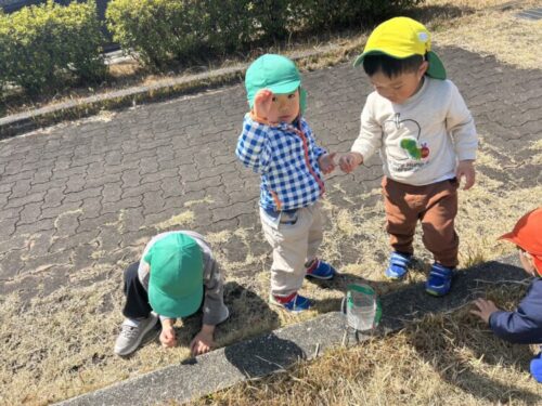 「ダンゴムシいたー‼️」と教えてくれました🙌他にもハサミムシやアリ、ナメクジを見つけることができて大興奮のひよこ&あひる&うさぎ組さんでした🐥🦆🐰