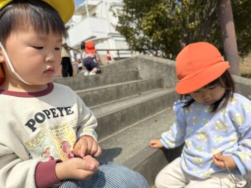 その後もしばらくダンゴムシ探しをするあひる組さん🔍赤ちゃんダンゴムシやおおきなダンゴムシ、ヤスデも見つけることができて大興奮でした🙌