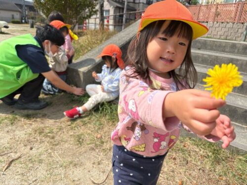 ポカポカと春らしい陽気になりました☀️今週最初のお散歩は植田山北公園に行きました🐼道中、たくさんのお花を見つけて「かわいい〜🩷」とニコニコなあひる組でした😊