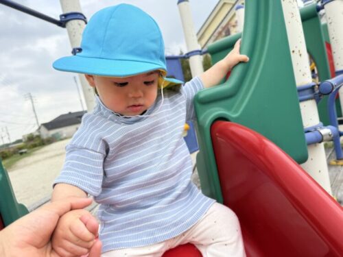 昨日に引き続きすべり台でも遊びます🛝保育者に助けられながら一緒にすべってみると、「キャー‼️」とニコニコ笑顔に☺️繰り返しすべって楽しんでいました✨